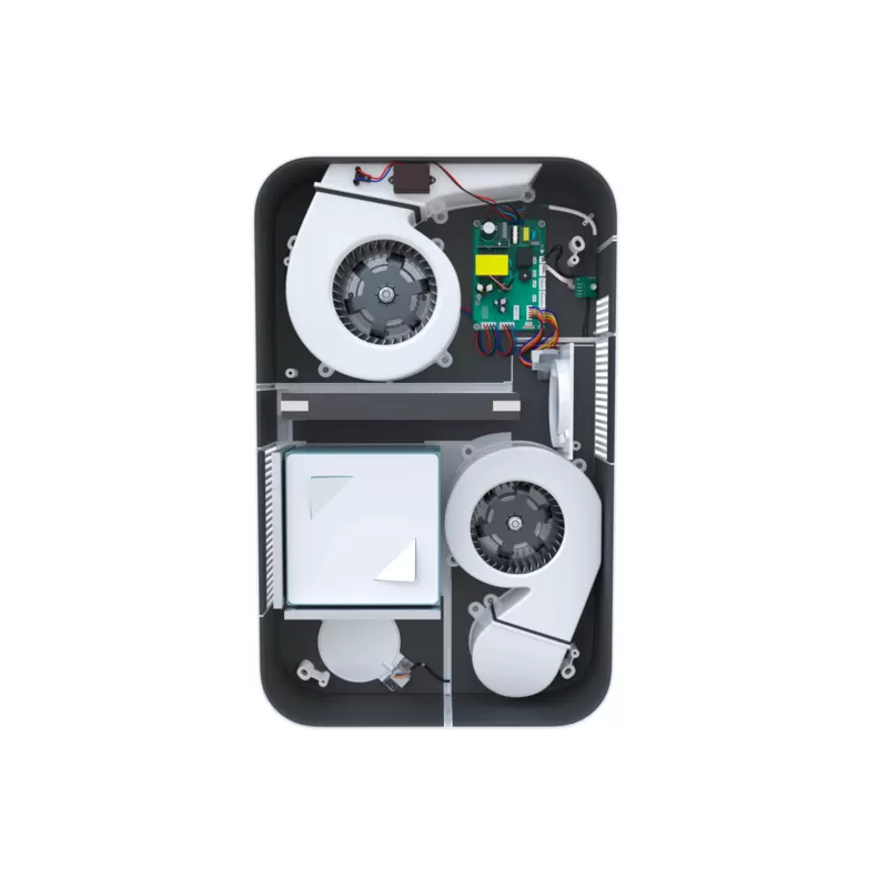 Работа приточного и вытяжного вентиляторов происходит одновременно. Производительности достаточно для помещений площадью до 75 м2. Отлично дополняет систему кондиционирования.