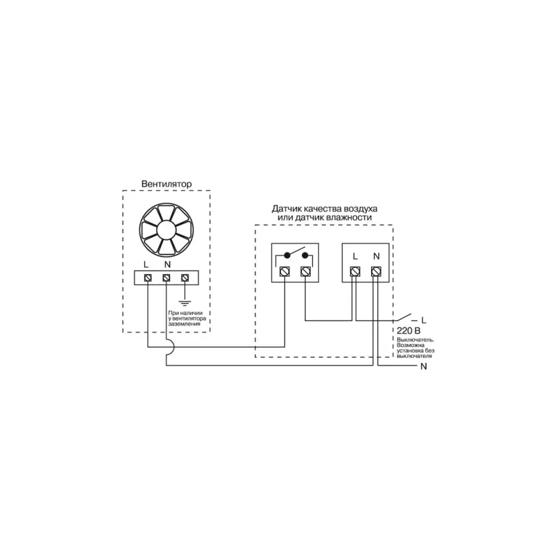 Диапазон регулировки таймера от 2 до 20 минут. После отработки по таймеру вентилятор автоматически отключается и датчик переходит в режим ожидания. Оба устройства смонтированы на одной плате и закрыты декоративным корпусом.