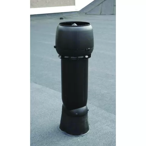 для скатной битумной кровли. Устанавливается при монтаже кровли. Размеры: 800 х 590 мм, ширина фланца 163 мм. Комплект: XL - проходной элемент. VILPE® XL-HUOPA проходной элемент высокий черный