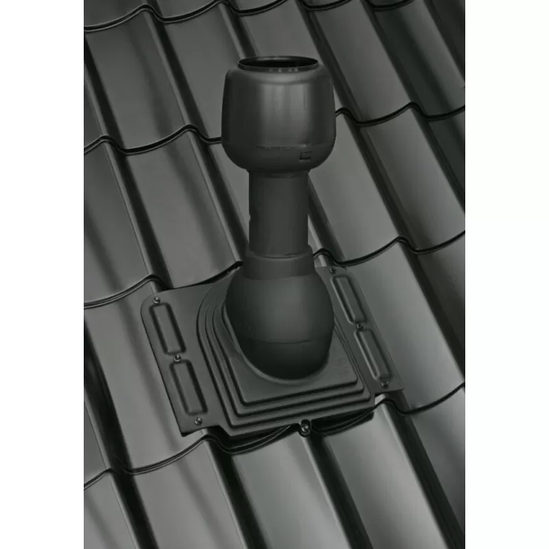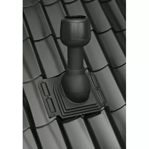 для металлочерепицы типа Decra Tile. Устанавливается при монтаже и на готовую кровлю (на готовую при доступе со стороны чердака). Размеры: 374 х 290 мм. Комплект: проходной элемент, кольцо гидрозатвора, герметик на безуксусной основе, шаблон и 2 набора крепежа. VILPE® NERA проходной элемент черный