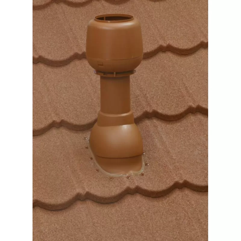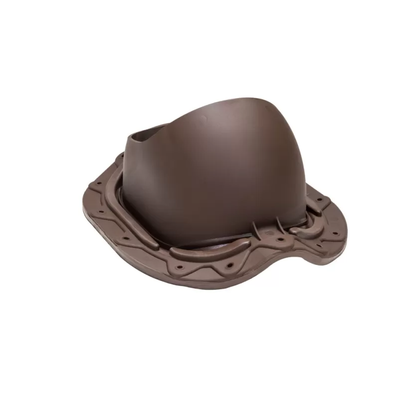 для фальцевой и готовой скатной битумной кровли с уклоном 5-27°. Верхняя часть ворота проходного элемента оснащена резиновым уплотнителем, что облегчает процесс монтажа и гарантирует дополнительную водонепроницаемость соединению. Устанавливается: битумная - на готовую кровлю; фальцевая - при монтаже и на готовую кровлю. Размеры: 369 х 265 мм. Комплект: проходной элемент, кольцо гидрозатвора, шаблон, монтажная инструкция и набор крепежа. Проходные элементы для металлической кровли для труб Ø 110 - 160 мм