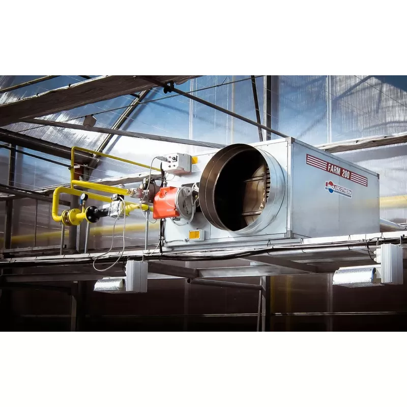 Итальянские нагреватели закрытого горения для отопления теплиц мощностью 90, 120, 150 и 200 кВт на природном газе и пропане. Нагреватели серии "FARM" устанавливаются непосредственно внутри теплиц с расчетом 1 нагреватель на 10 соток квадратных. В зависимости от модели на нагреватели FARM 150 и FARM 200 устанавливаются либо осевой либо центробежный вентилятор, что непосредственным образом влияет на дальность воздушного потока, особенно этой момент важен для теплиц с узкой и длинной конфигурацией.